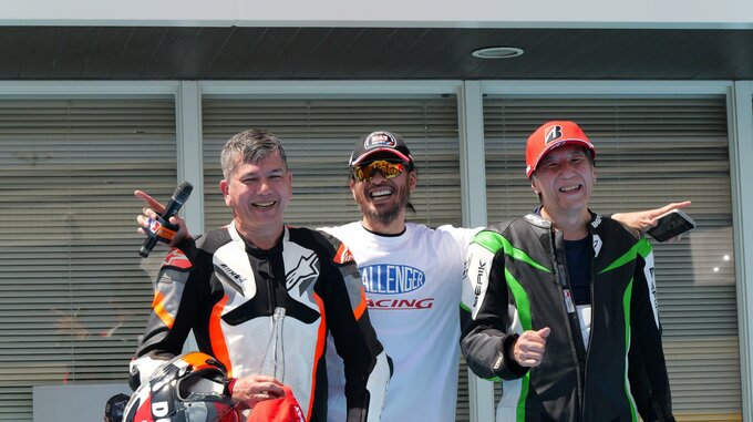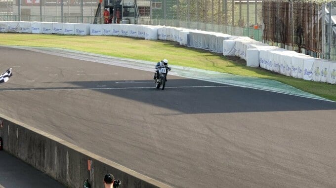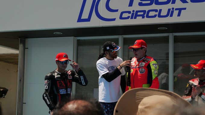 FSCRクラスの表彰式はバイクファンらがぎっしり集まる熱気の中で行われ、司会の恩田浩彦さんに心境を尋ねられた長瀬さんは「最高に楽しかったですね」「これだけ多くの方々が見て下さったって言うのと、レースの神様が、ちょっと僕を見てくれたような気がしたので、良かったです」とコメント。〝今年唯一の参戦〟とした今回のレースを、充実の表情で締めくくっていました。