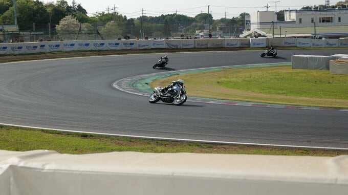 ピットロードに並んだ出場マシンたちが一斉にエンジンをスタートさせると、すでにヘルメットの中の長瀬さんの目線は真剣なものに。猛スピードで周回するマシンたちにより、あっという間にタイムアタックは終了。ゼッケン66番の長瀬さんは予選3位につけました。