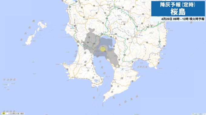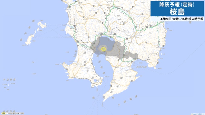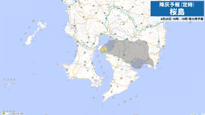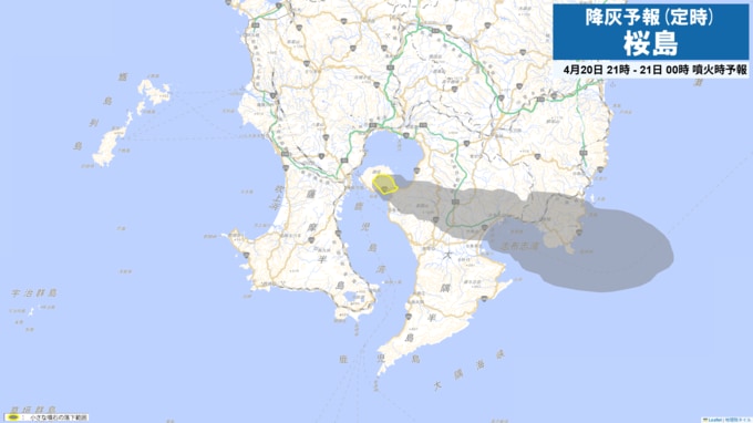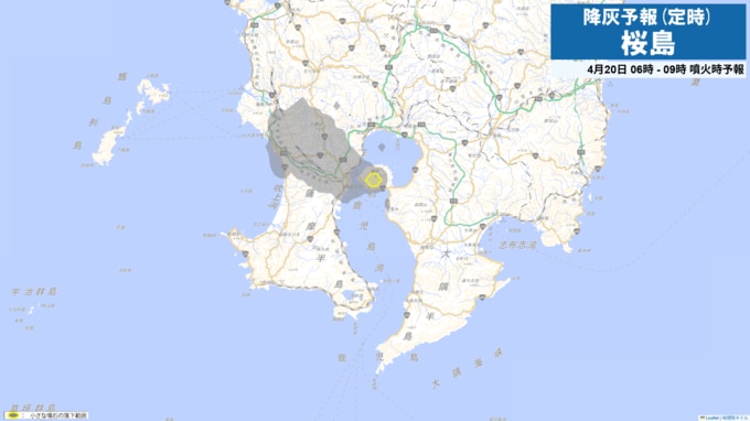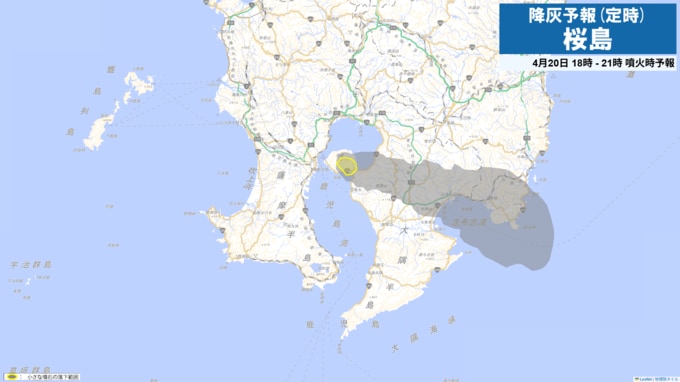 桜島の降灰予報 鹿児島市吉野方向に(画像で掲載)