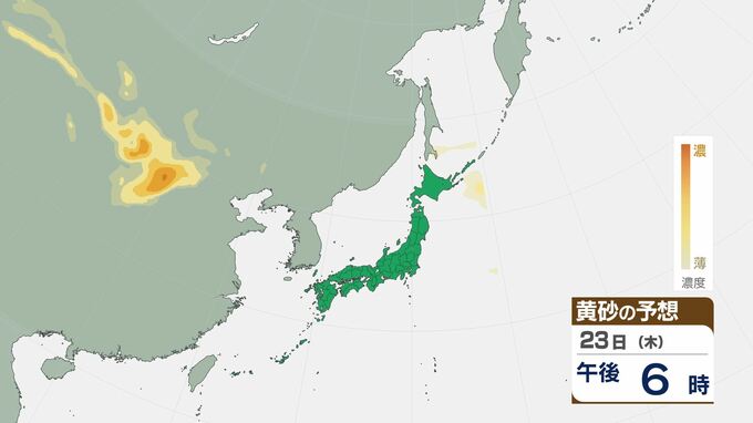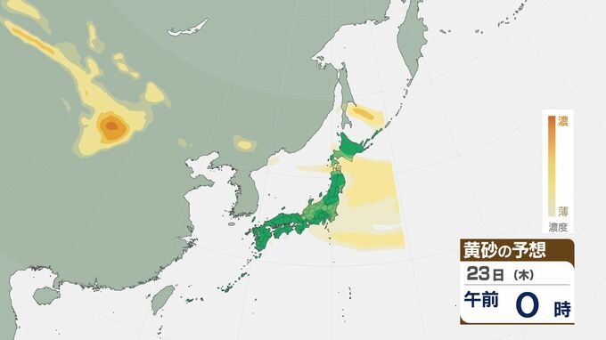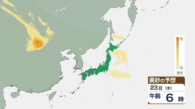 【黄砂情報】20日(月)から日本列島に黄砂飛来か…気象庁が「黄砂に関する全般気象情報」発表 北日本~西日本で視程10km未満に 交通障害発生のおそれも【23日(木)にかけての黄砂飛来シミュレーション】 3時間前