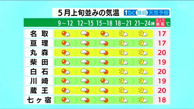 薄い雲が出やすいものの、おおむね晴れるでしょう。長い時間外で過ごす方は、紫外線が強まってきていますので日焼け対策が必要です。
