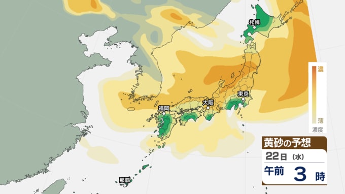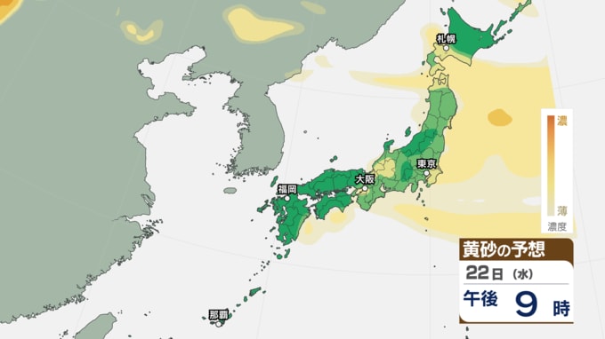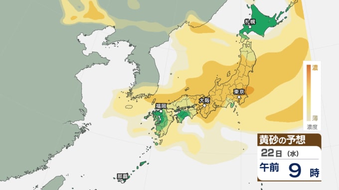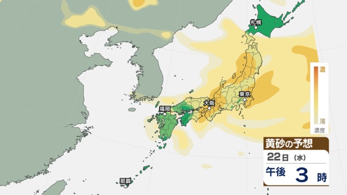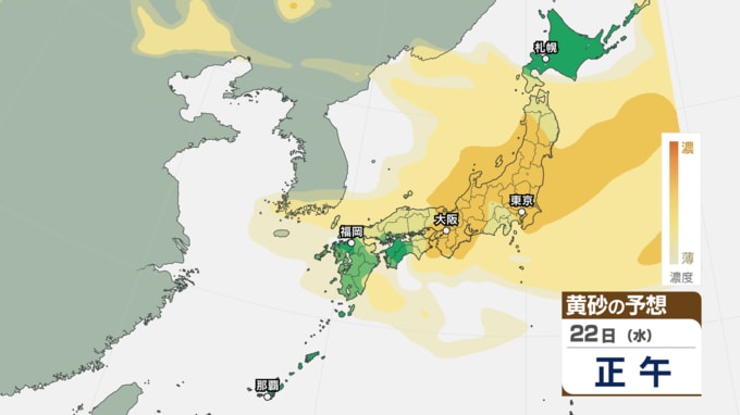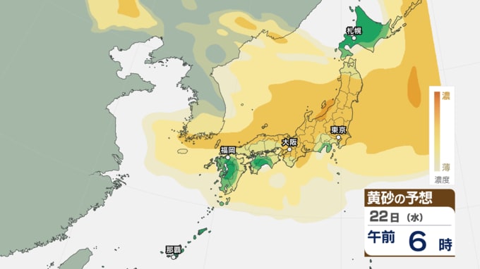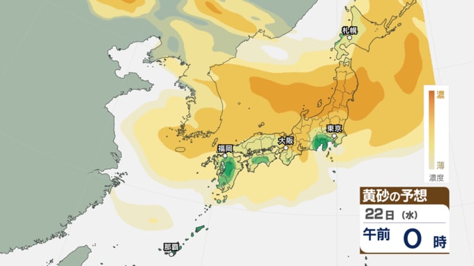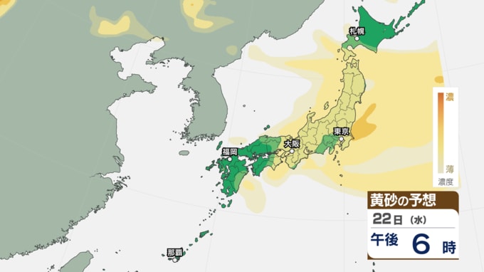 【 黄砂注意 】あす21日~22日は全国的に黄砂飛来へ アレルギーや呼吸器系疾患の人は注意を【黄砂情報・黄砂シミュレーション・20日午前11時40分時現在】 新潟放送 2026年4月20日(月) 11:44 国内 天気 22日(水)の黄砂シミュレーション