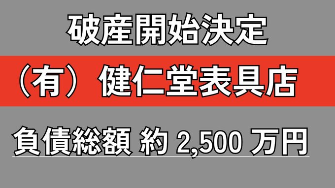 【倒産】和装建築の減少で掛け軸や屏風の需要が減退...1971年設立の内装建具メーカーが破産開始決定 負債2500万円【帝国データバンク】 RSK山陽放送 2026年4月20日(月) 10:49 国内 事業規模は小規模に止まる 同社は1971年6月に設立された内装建具メーカーで、一般個人や地元工務店を対象に掛け軸や屏風の仕立て、修理のほか、ふすまの貼り換えなど内装工事を手掛けていました。