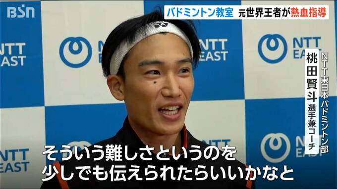 新潟市東区で18日、バドミントン教室が開かれ、元世界王者の桃田賢斗選手が熱血指導しました。