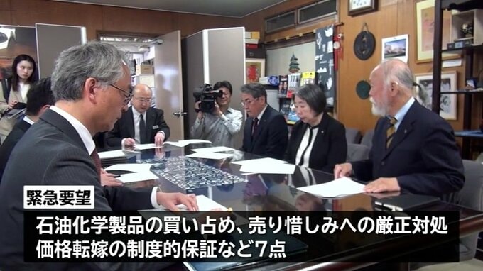 要望は石油化学製品などの買占めや、売り惜しみに厳正に対処することや、円滑な価格転嫁を制度的に保障することなど7点を求めています。