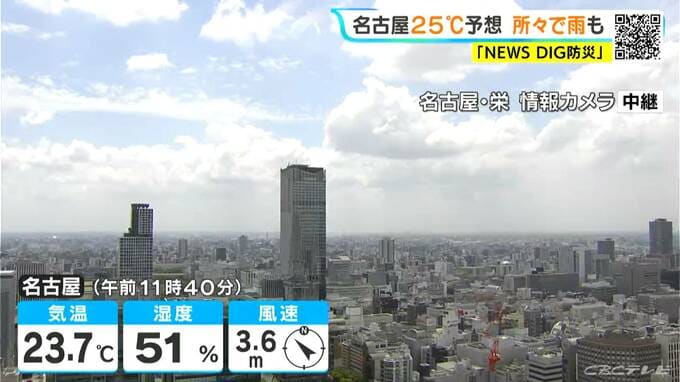 正午前の名古屋市内は、雲は出ていますが、朝から晴れ間が広がっています。名古屋では午前8時ごろに気温が20℃を超え、この時間は汗ばむ陽気になっています。