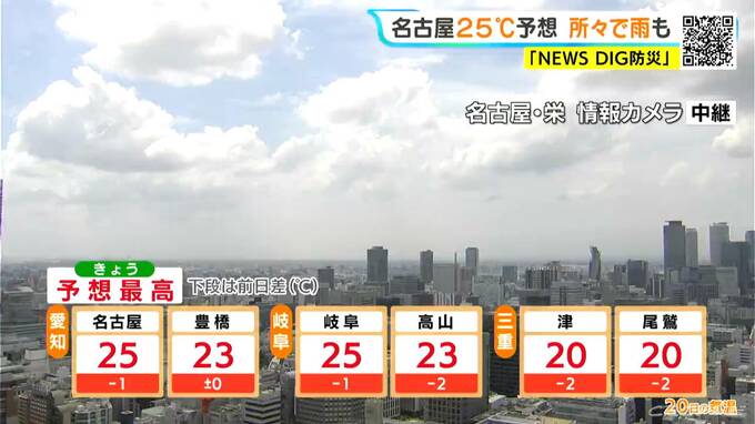 予想最高気温は名古屋や岐阜で25℃と、夏日になる所があるでしょう。津や尾鷲は20℃の予想で、雨が降ると空気がヒンヤリと感じられそうです。