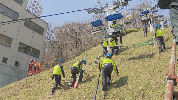 札幌市中央区の大倉山ジャンプ競技場では、夏の営業前にリフトが停止した場合に備えた救助訓練が行われました。