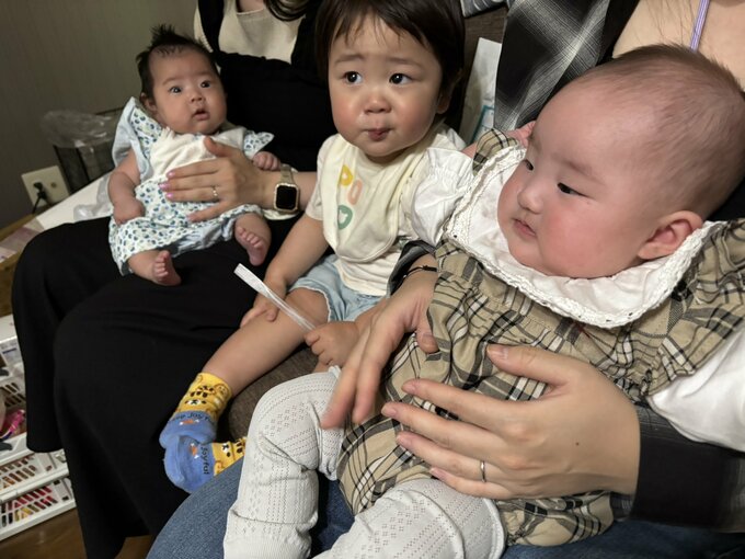 日野日出志さんは「明日はいよいよ80歳の誕生日。今日はひ孫3人が会いに来てくれました」と綴ると、写真をアップ。