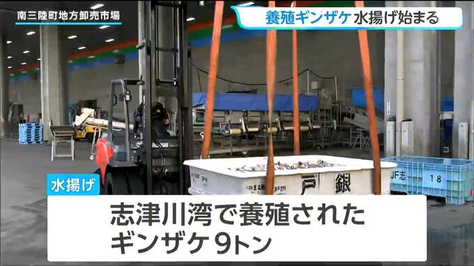 宮城県南三陸町の魚市場には、20日朝、志津川湾で養殖されたギンザケ約9tが運び込まれました。