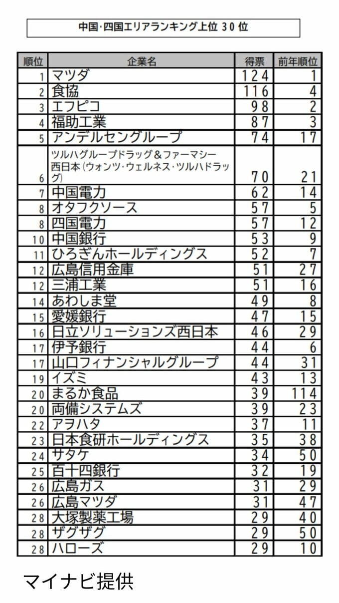 学生が就職したい人気企業ランキング 中国・四国エリアはどこの会社?【マイナビ・日本経済新聞社 調査】 RSK山陽放送 2026年4月20日(月) 15:00 国内 中国・四国エリア 上位30位の企業 調査は2025年10月1日から2026年3月23日にかけて実施され、2027年3月卒業・修了見込みの全国大学3年生・大学院1年生を対象としたものです。有効回答数は2,580件でした。 ▶この記事を最初から読む