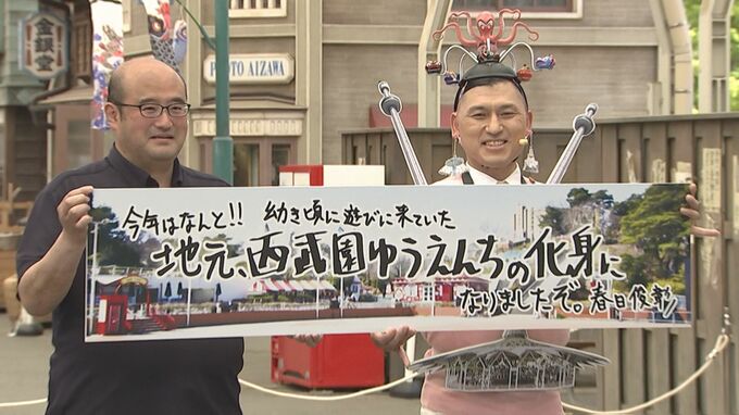 お笑いコンビ・オードリーの春日俊彰さんが地元、埼玉の「西武園ゆうえんちの化身」任命式に登場しました。
