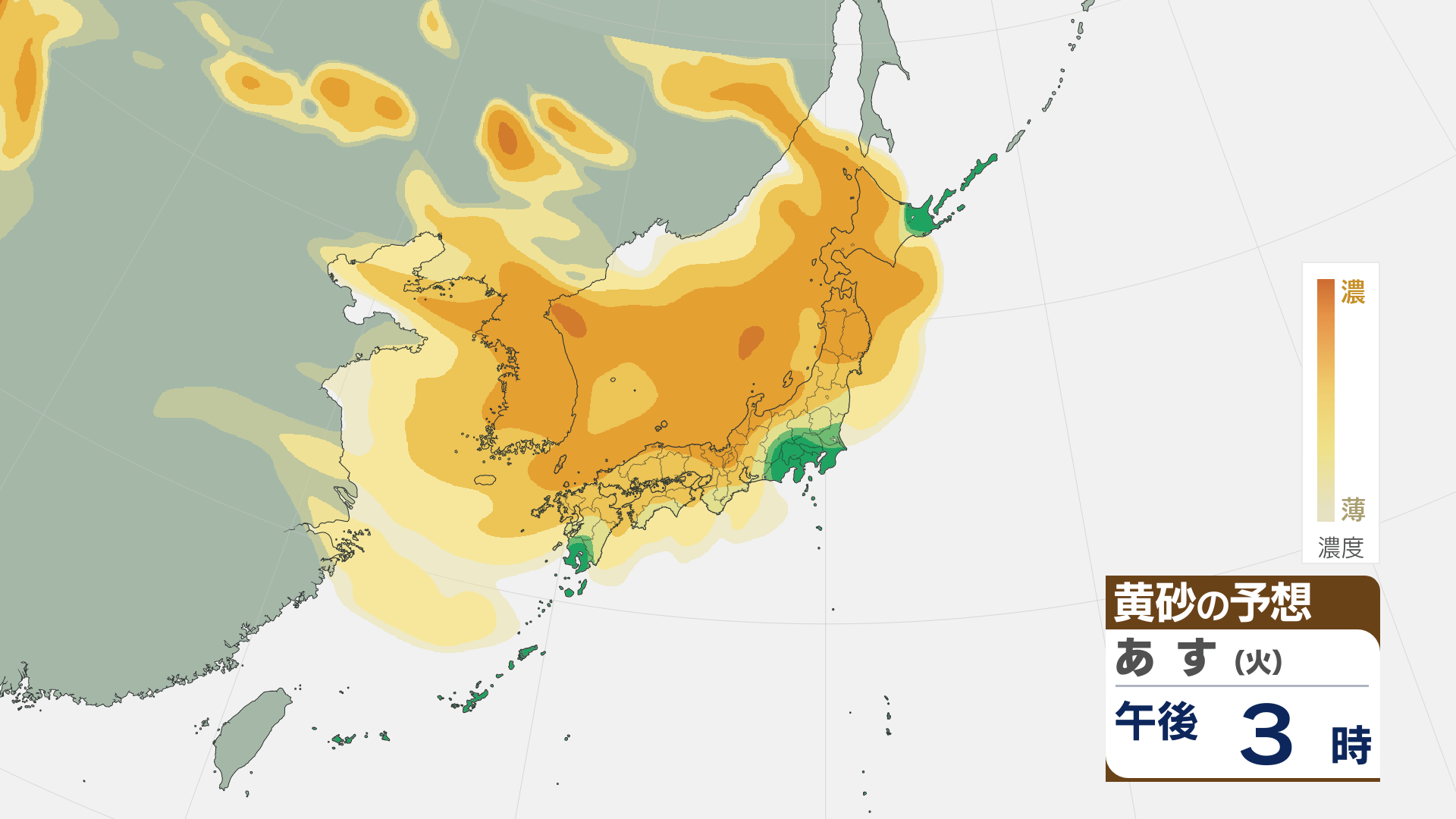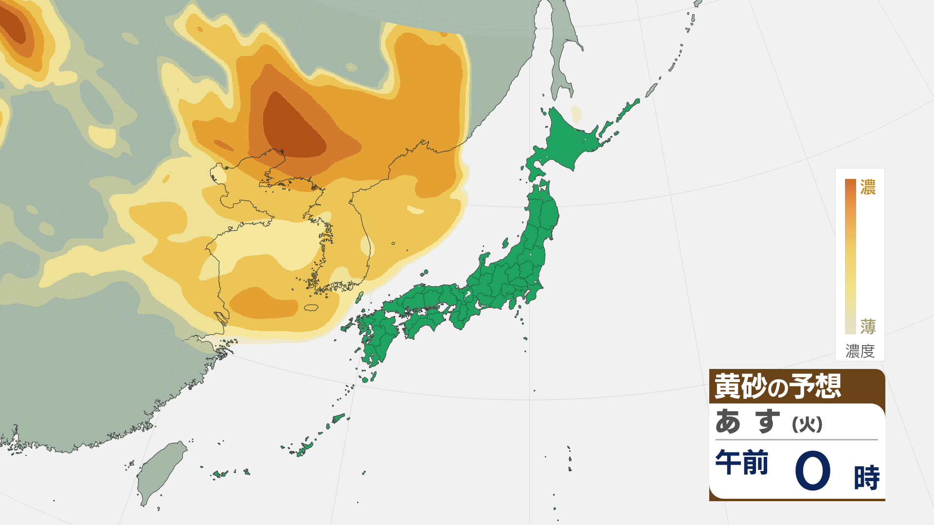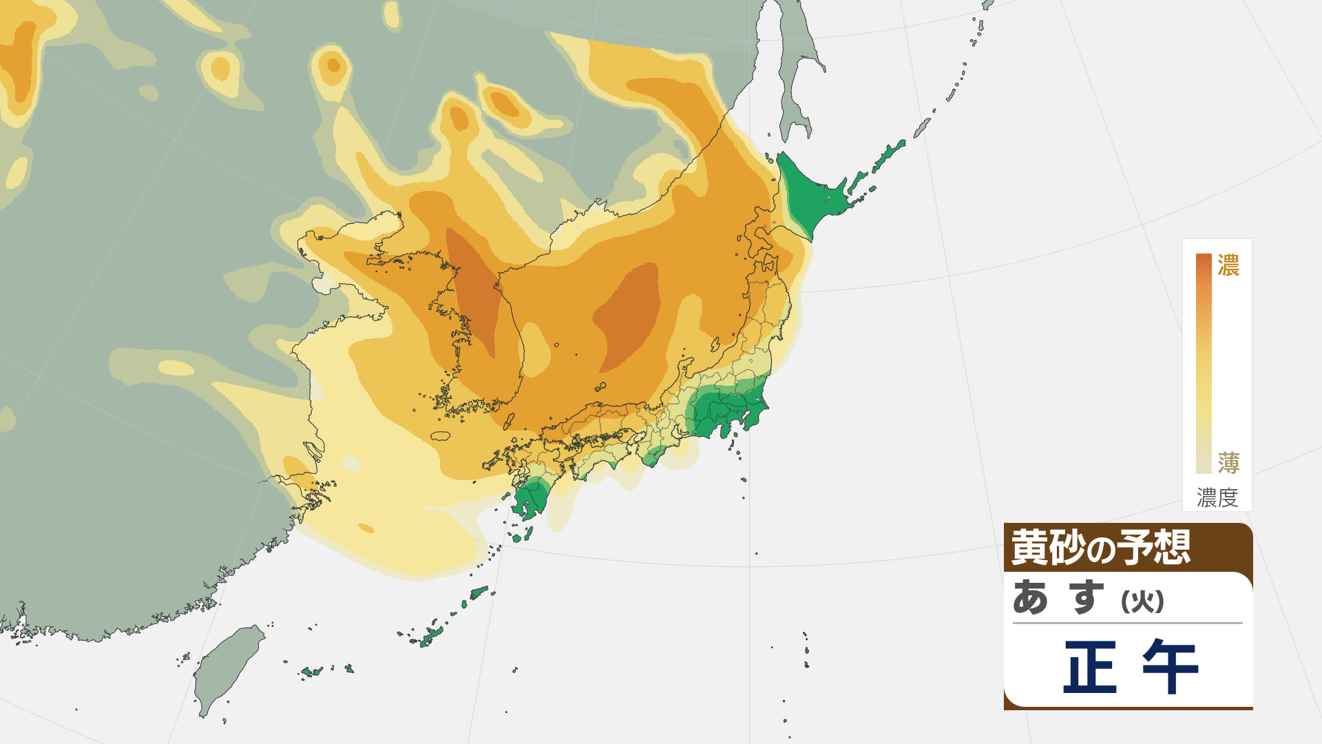 【黄砂情報】21日から日本列島ほぼ全域に黄砂飛来か《気象庁発表》視程は10キロ未満に 予想シミュレーションも掲載 北海道放送 2026年4月20日(月) 14:38 国内 天気 ▶画像で見る【黄砂】飛来予想 21日(火)~