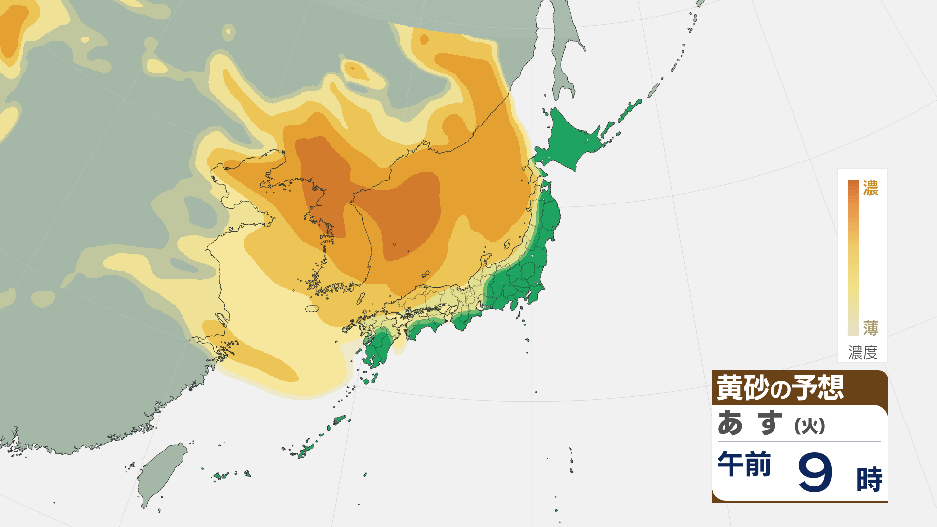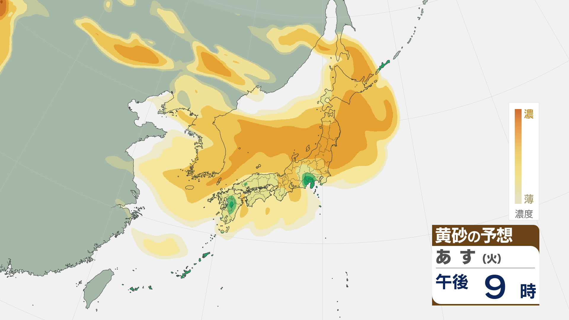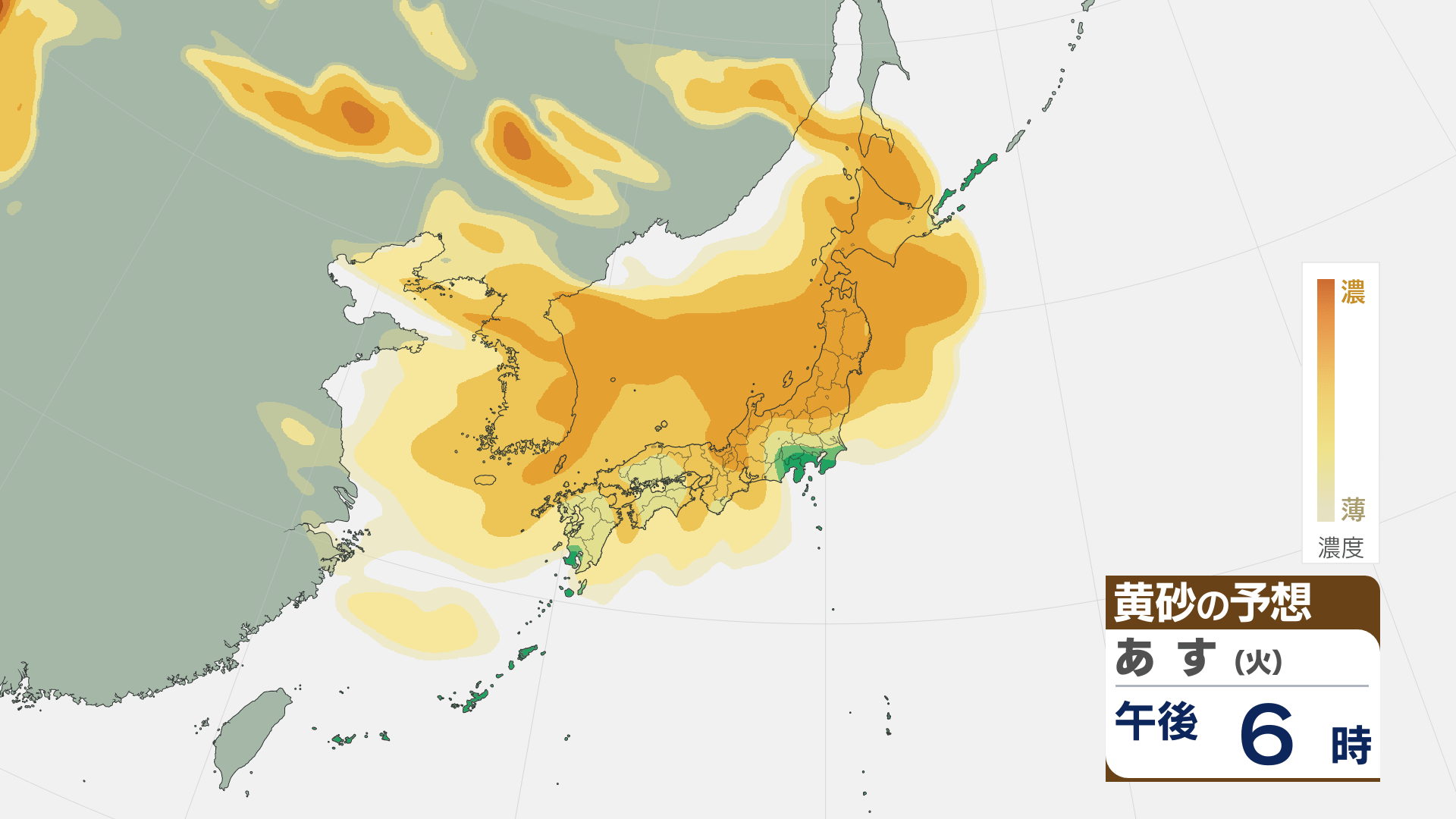 【黄砂情報】21日から日本列島ほぼ全域に黄砂飛来か《気象庁発表》視程は10キロ未満に 予想シミュレーションも掲載 北海道放送 2026年4月20日(月) 14:38 国内 天気 ▶画像で見る【黄砂】飛来予想 21日(火)~