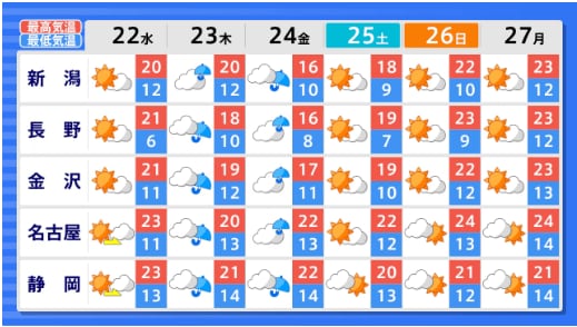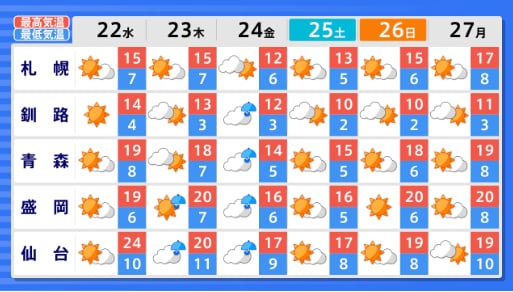 【2週間気温予報】北・東日本の気温は高い日が多く、かなり高い日も 農作物の管理などに注意 今後の全国の天気を地方ごとに 気象庁 テレビユー山形 2026年4月20日(月) 15:01 国内 ■全国の天気を地方ごとに(画像) 画像はTBS NEWS DIG Powered by JNNより 画像ありの記事を最初から https://newsdig.tbs.co.jp/articles/-/2611153?display=1