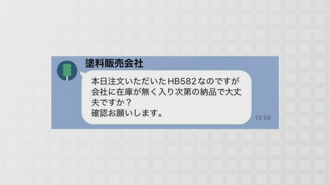 「本日ご注文いただいたHB582なのですが、会社に在庫がなく、入り次第の納品で大丈夫ですか?確認お願いします」との返事が。