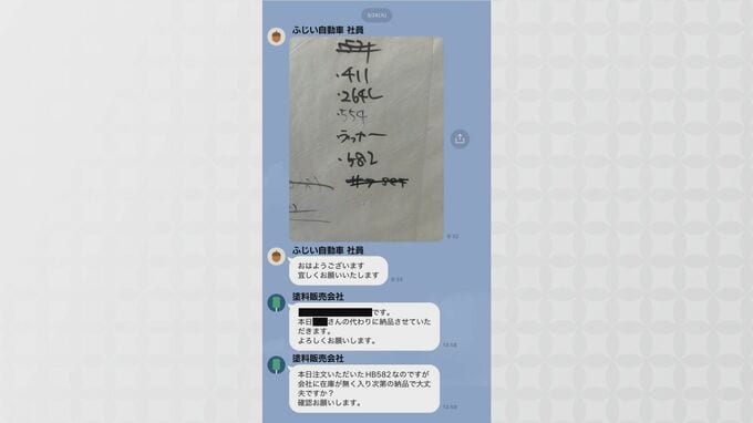 3月にふじい自動車がシンナーの仕入れ先と行ったやりとりを見せてもらいました。