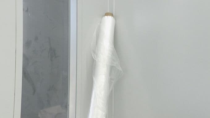 塗装作業の際、必要のない部分を保護するために、使い捨てのビニールを使ってきましたが、こちらも仕入れが厳しくなってきたため、4月上旬から使い回しのきくシートを使っています。