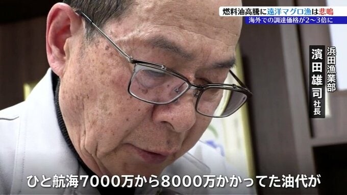 「ひと航海7000万から8000万かかってた油代が今、たぶんこの調子でいくと1億5000万はかかるだろうなとそういう事になりますね」