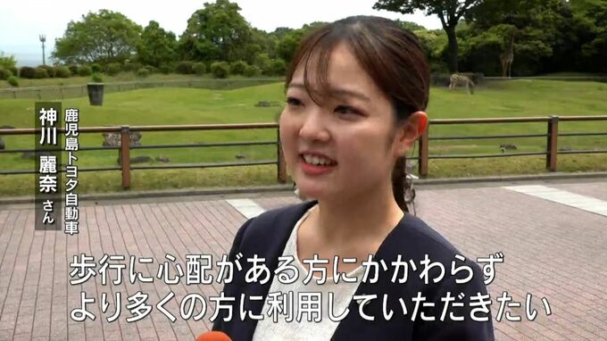 (鹿児島トヨタ自動車 神川麗奈さん)「動物と目線が近くなることも魅力、歩行に心配がある方にかかわらず、より多くの方に利用していただきたい」