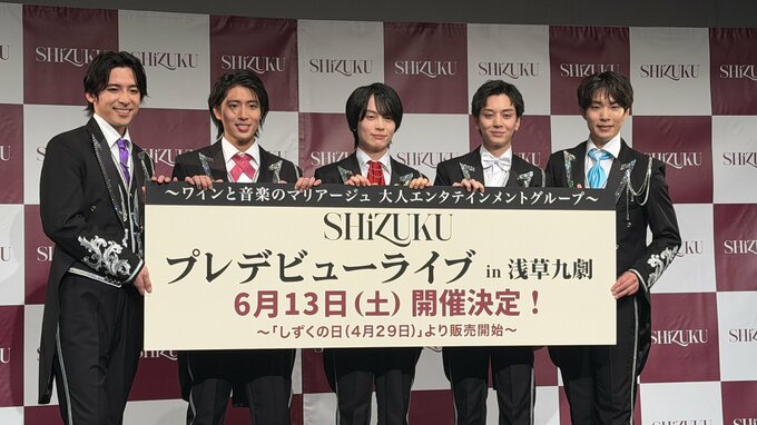 ワインと音楽がテーマの〝大人向け〟歌謡グループ「SHiZUKU」は、去年12月に「人生の第二章を切り拓け!」というキャッチコピーのもと、25歳以上の成人男性を対象に行われたオーディションによって結成。