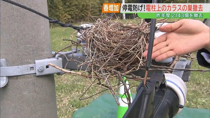 春になると増える、電柱などに作られた「カラスの巣」。放っておくと停電トラブルを引き起こす可能性もあり、福島県いわき市では、16日、撤去作業が行われました。