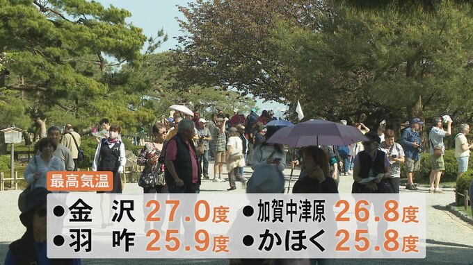 金沢市の兼六園では、朝から日差しが照り付けるなかこまめに水分をとるなどして名園の散策を楽しむ人の姿が見られました。