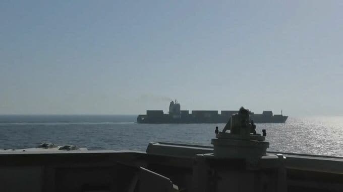 米中央軍は20日、アラビア海でイラン船籍の貨物船に対し警告する様子を公開しました。