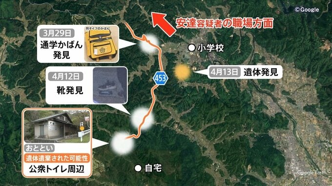 安達容疑者の自宅から車で約5分の場所にある「公衆トイレ」に遺体が遺棄された可能性があるということで、18日に警察は公衆トイレ周辺を捜査していたこともわかっています。