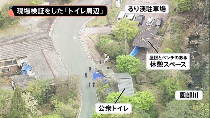 公衆トイレ周辺を現場検証 遺体遺棄された可能性