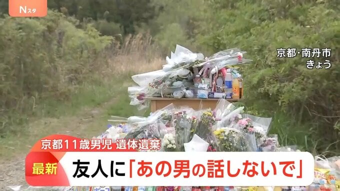 20日、京都府南丹市の男子児童が遺体で見つかった現場では、多くの花が手向けられていました。