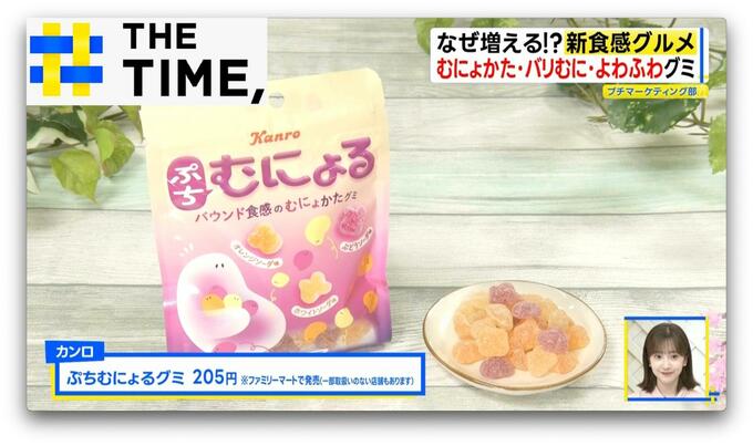 “食感の代表格”ともいえる「グミ」は毎週のように新商品が発売されていますが、つい先日登場したのが「ぷちむにょるグミ」(カンロ/45g・205円)※ファミリーマートで発売・一部取り扱いのない店舗もあります