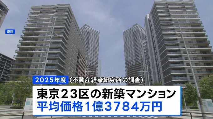 2025年度の東京23区の新築マンションの平均価格が過去最高を更新。1億3000万円を超えました。不動産経済研究所によりますと、去年4月から今年3月に東京23区で販売された新築マンション1戸あたりの平均価格は1億378…