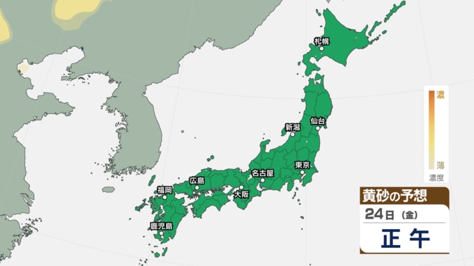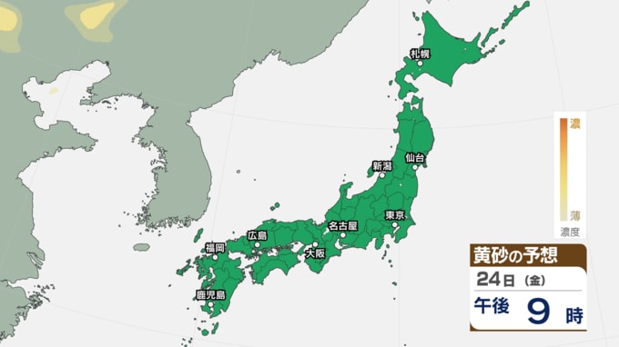 【 黄砂情報 】あす22日にかけて黄砂が北日本~西日本の広範囲に飛来 アレルギーや呼吸器系疾患の人は注意を【黄砂のシミュレーション・21日午前10時40分現在】 新潟放送 2026年4月21日(火) 10:44 国内 天気 24日(金)の黄砂のシミュレーション
