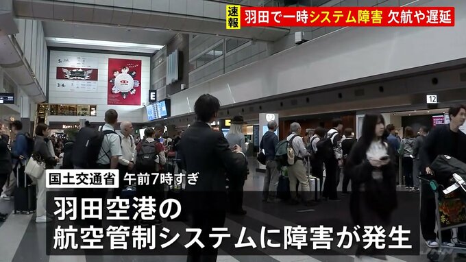 羽田空港の管制システムに一時障害が発生し、欠航や遅延などの影響が出ています。