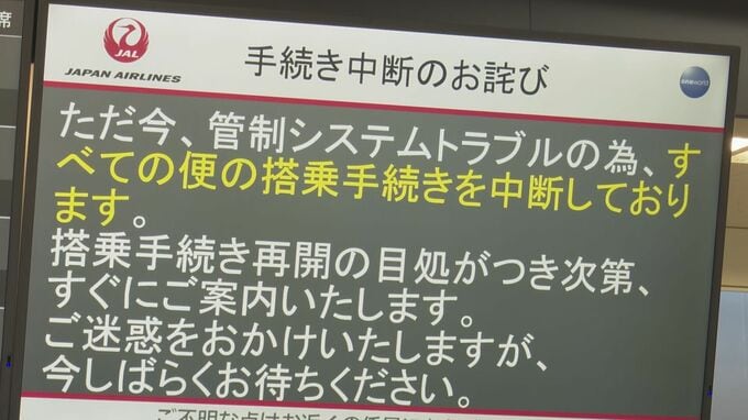 システムトラブルの影響は午後も続くとみられ羽田や那覇を結ぶ便では出発時間が遅れや未定となっています。