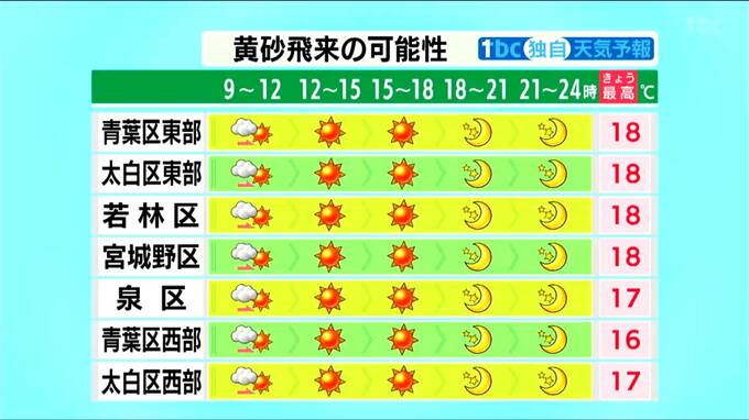 ■太白区東部:18℃ ■太白区西部:16℃ ■宮城野区:18℃