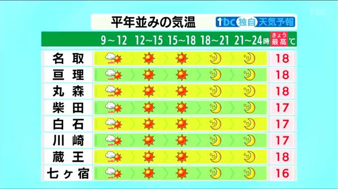 ■柴田:17℃ ■白石:17℃ ■川崎:17℃