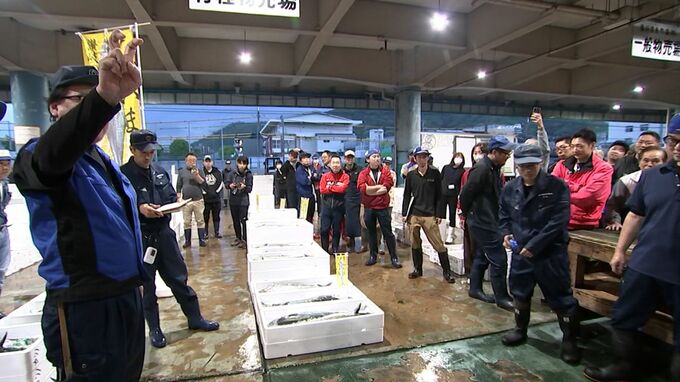 昨夜(20日)のうちに瀬戸内海で捕獲されたサワラが初セリにかけられ、最も高いものには昨年と同じ1キロあたり2万円の値がつきました。