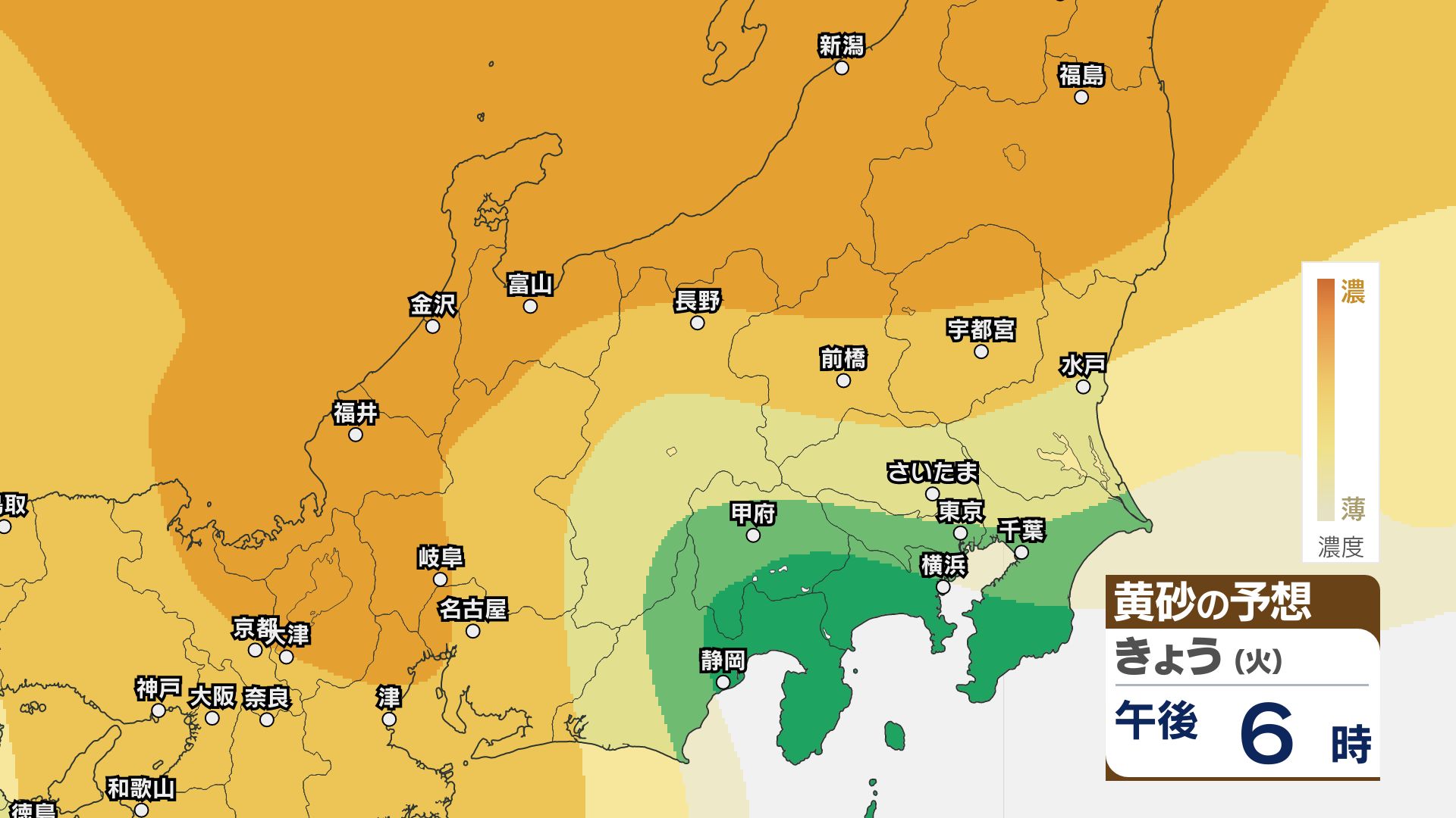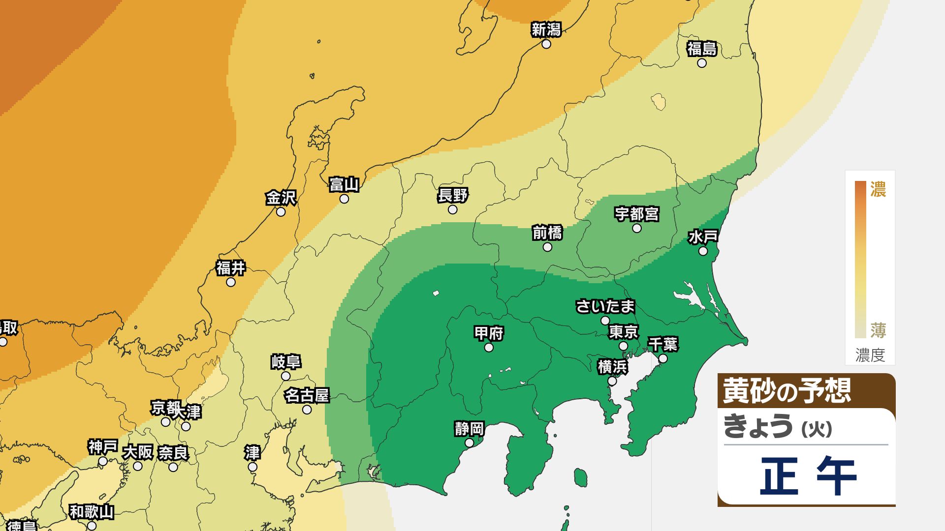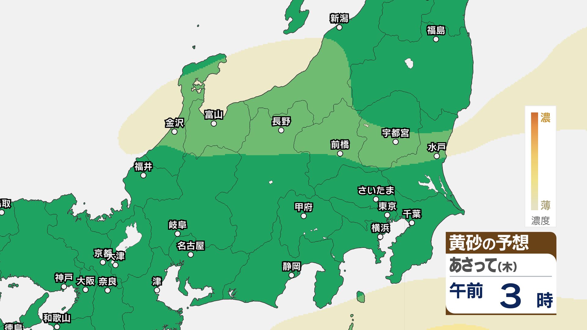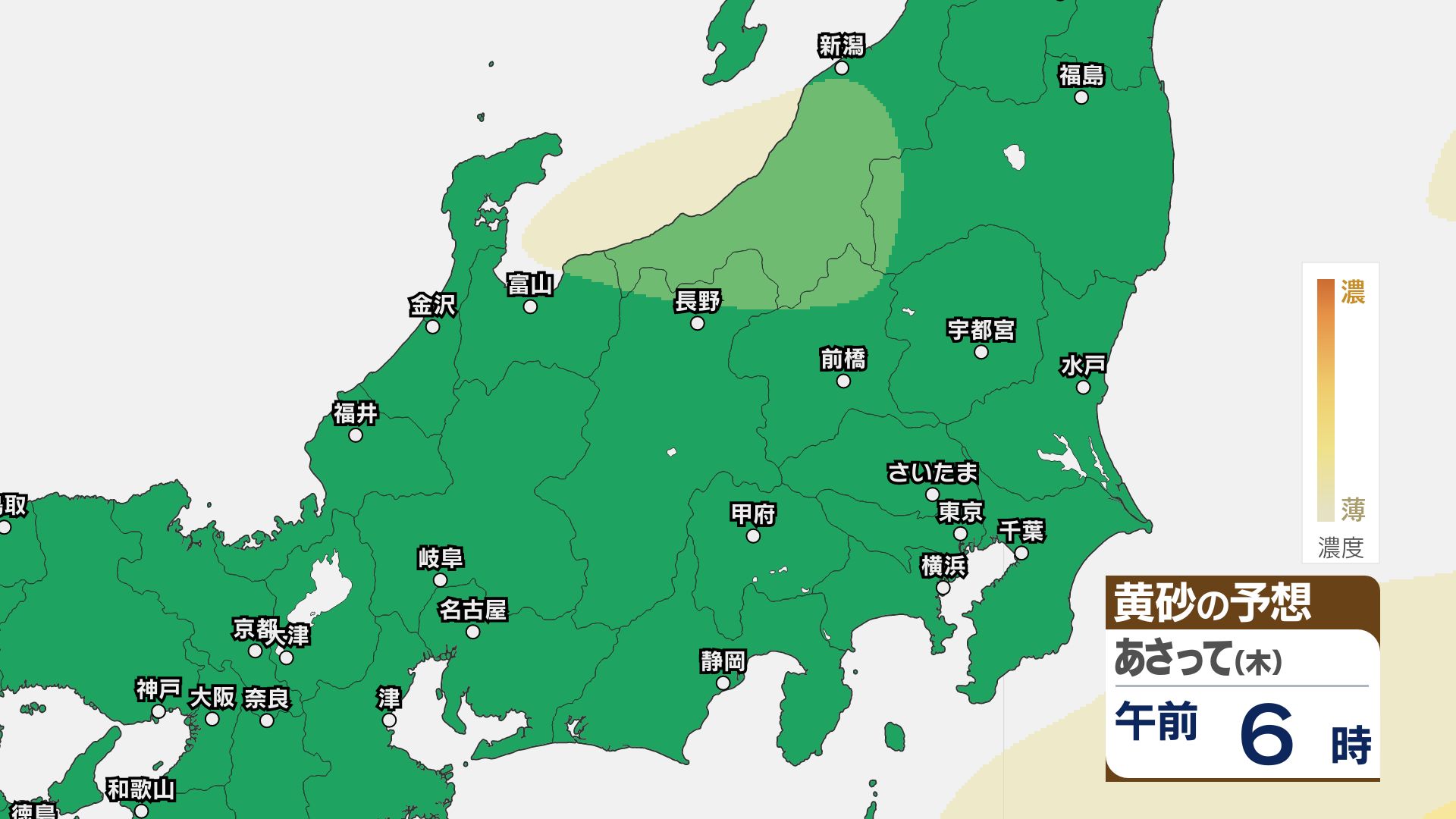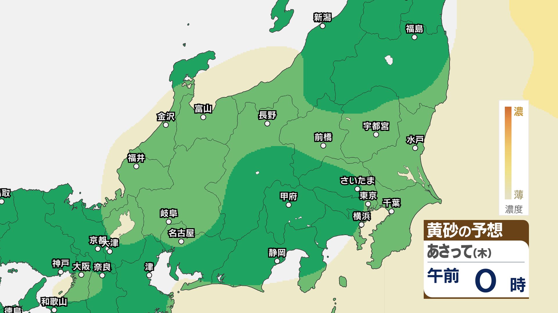 【黄砂情報】関東甲信など北日本から西日本の広い範囲 きょう21日~22日にかけ【黄砂のシミュレーション】気象庁 信越放送 2026年4月21日(火) 11:22 国内 21日~23日の黄砂シミュレーション・関東甲信