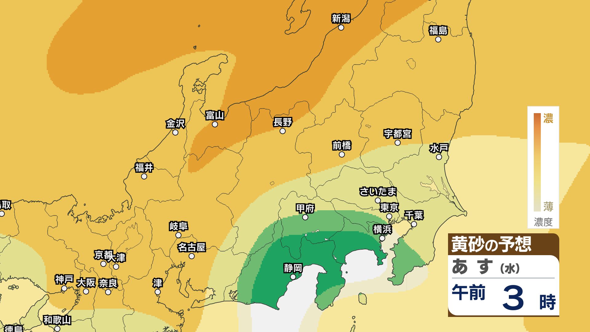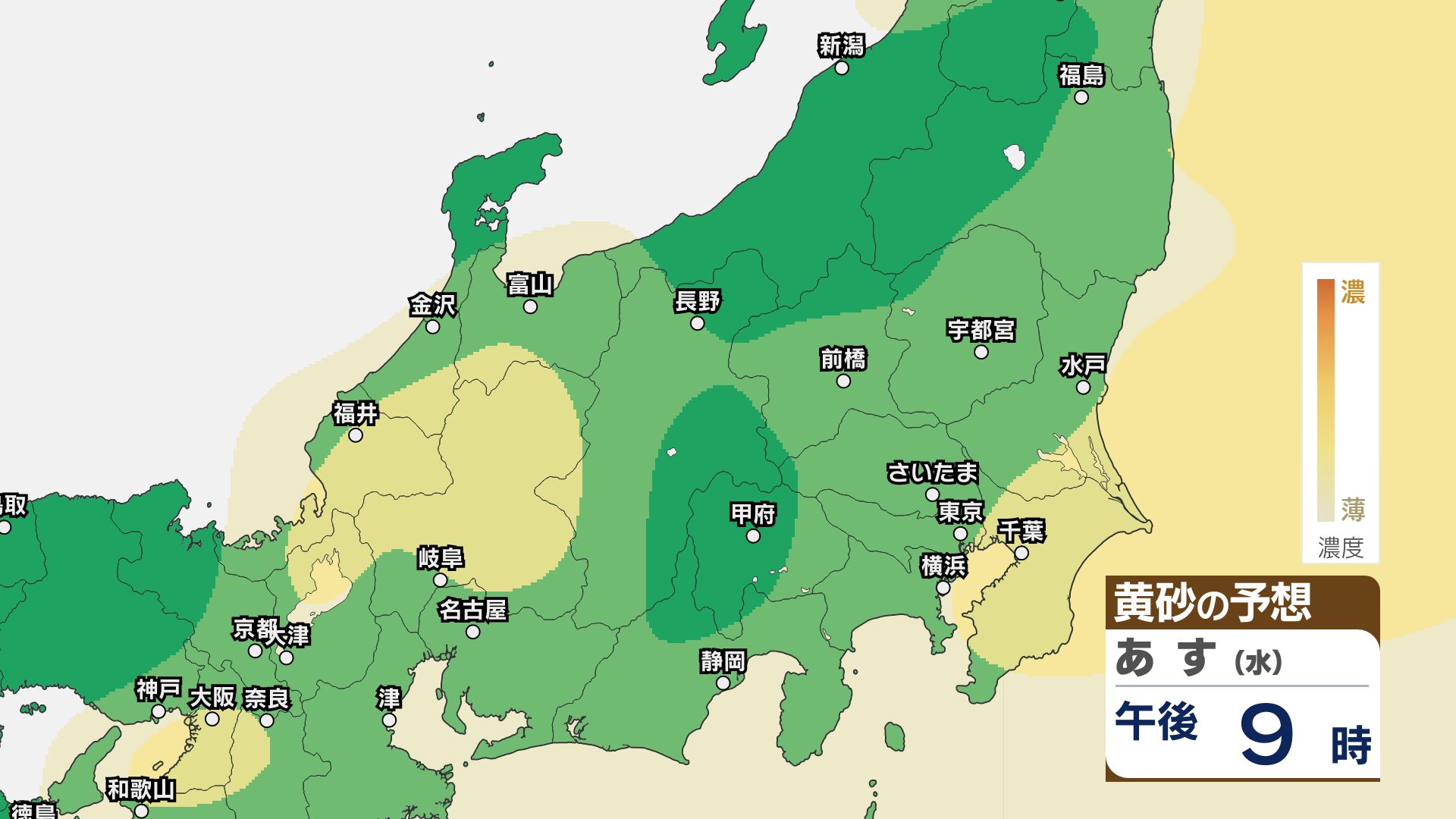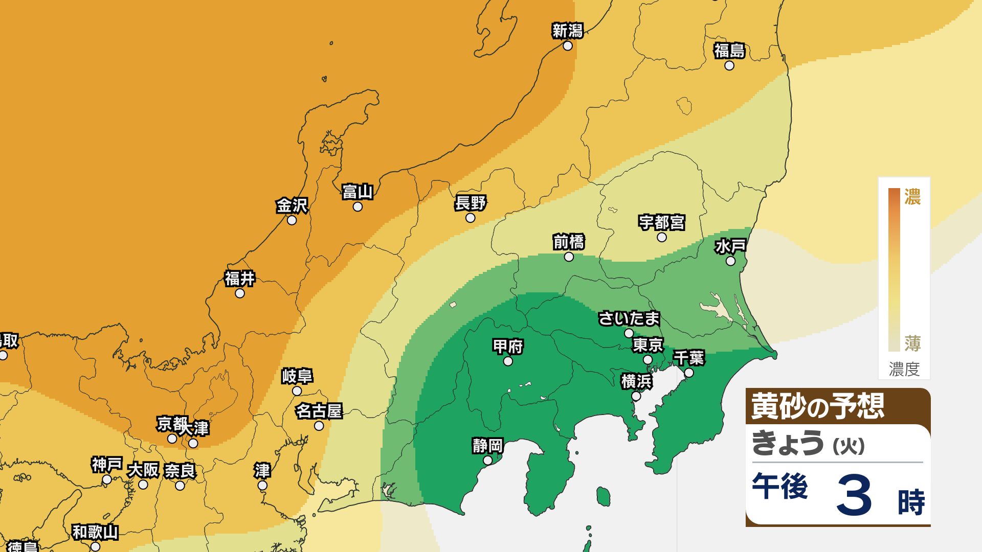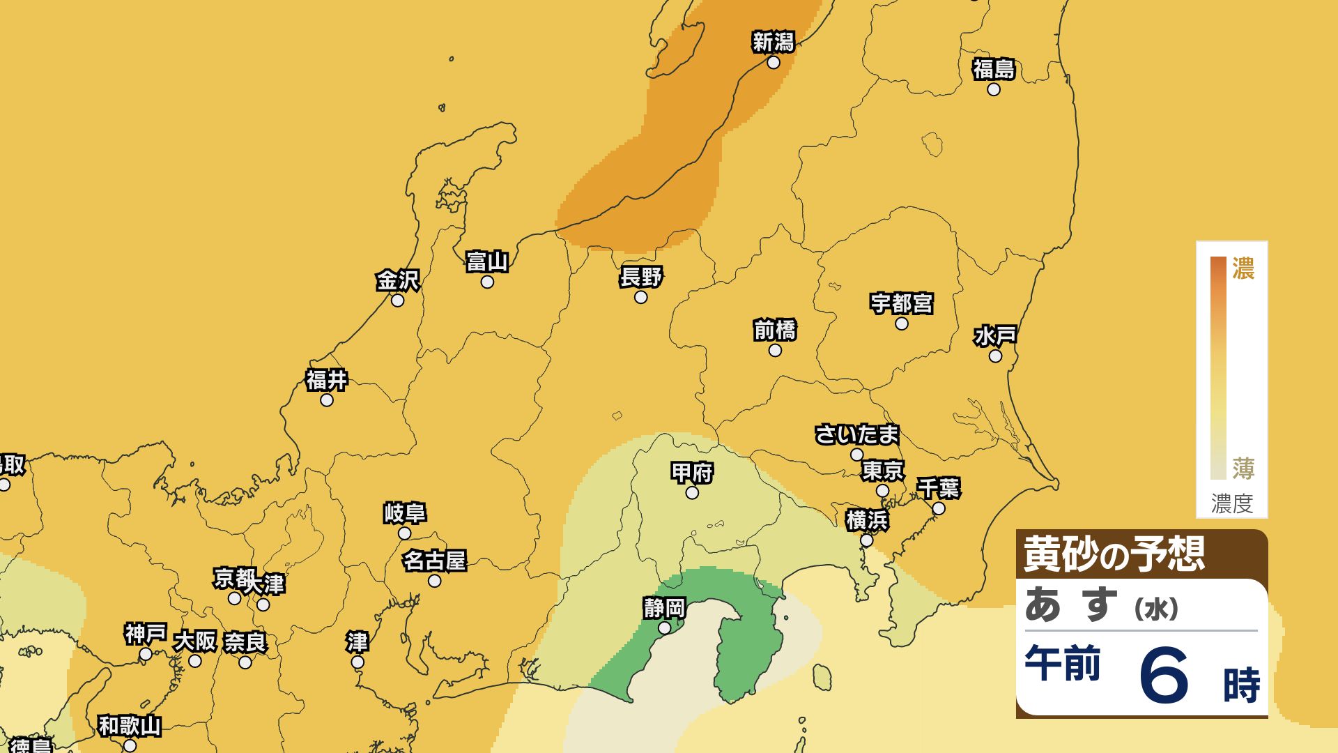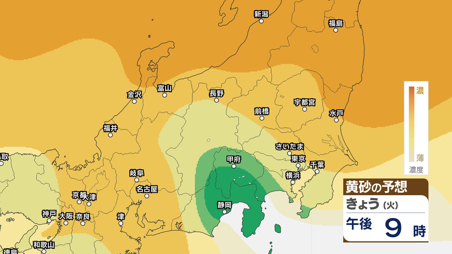 【黄砂情報】関東甲信など北日本から西日本の広い範囲 きょう21日~22日にかけ【黄砂のシミュレーション】気象庁 信越放送 2026年4月21日(火) 11:22 国内 21日~23日の黄砂シミュレーション・関東甲信