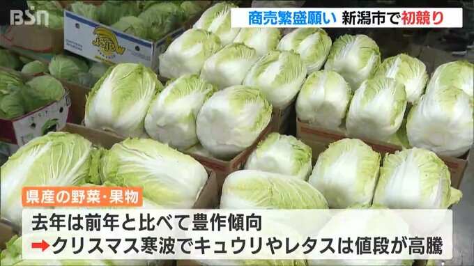 新潟市の中央卸売市場で5日朝に行われた初競り。