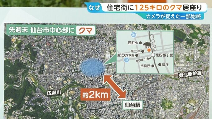 今回クマの目撃が確認されたのは、仙台駅から約2キロ離れた街の真ん中です。