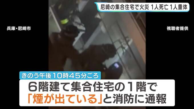 4月20日夜、兵庫県尼崎市の集合住宅で火事があり、1人が死亡し1人が意識不明の重体です。 20日午後10時45分ごろ、尼崎市南竹谷町にある6階建ての集合住宅の1階で、「煙が出ている」と近くに住む人から消防に通報…