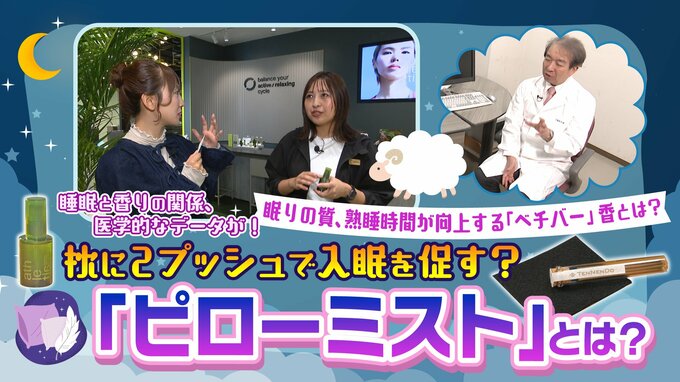 睡眠の質を高めてくれる「香り」が今、注目されています。香りの専門店や、睡眠と香りの研究を進めている研究者を訪ねました。「眠りに良い香り」とは。