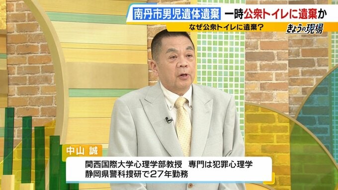 従来の死体遺棄事件では、遺体を遠くへ運んだり土の中に深く埋めたりするのが「定石」とされていました。しかし、遺体発見場所も今回の「公衆トイレ」も自宅から数kmの場所。この点について、中山教授は「ドライブレコーダーに対する過剰な警戒心が背景にある」と推測します。
