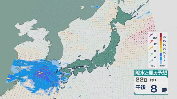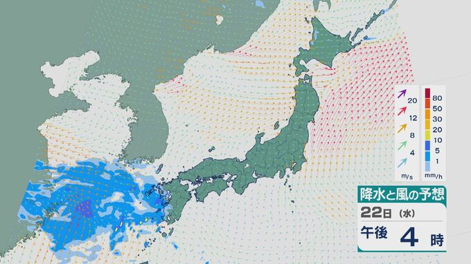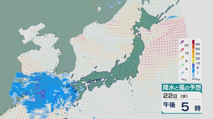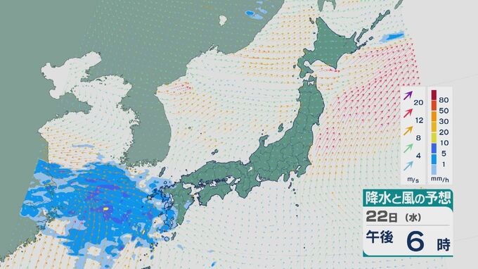 23日(木)から24日(金)にかけて低気圧が発達しながら日本付近を通過 23日は九州から近畿にかけて大雨のところも 雨と風シミュレーション 北陸放送 2026年4月21日(火) 18:15 国内 22日昼過ぎからの雨と風の予想ですが、夕方以降九州に雨雲がかかりそうです。