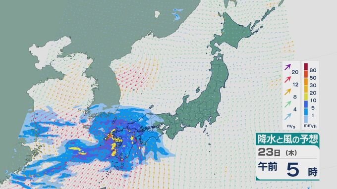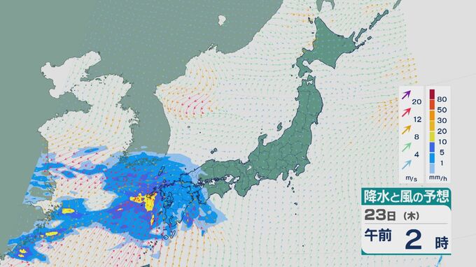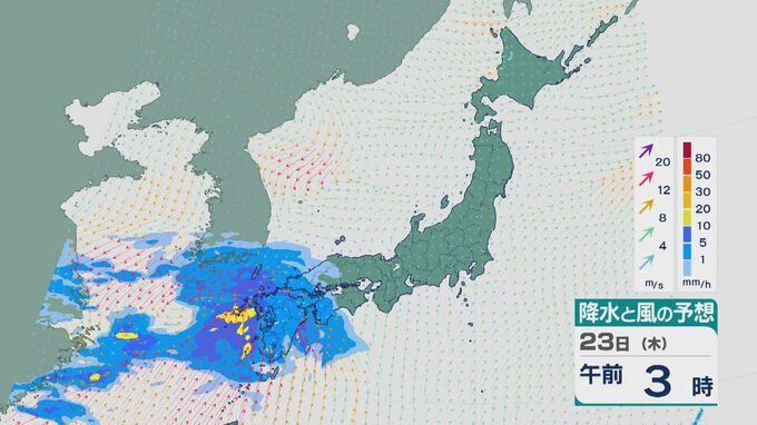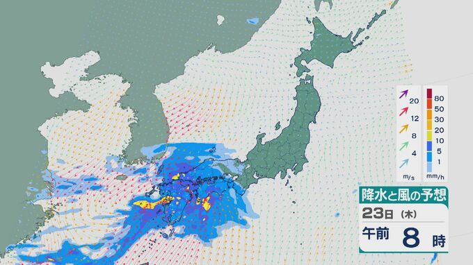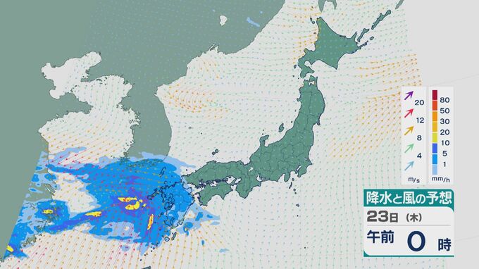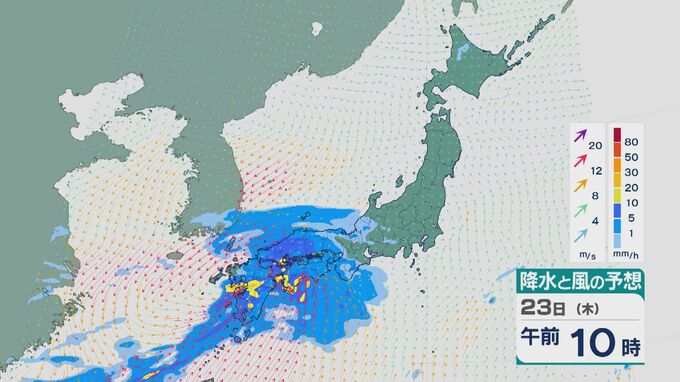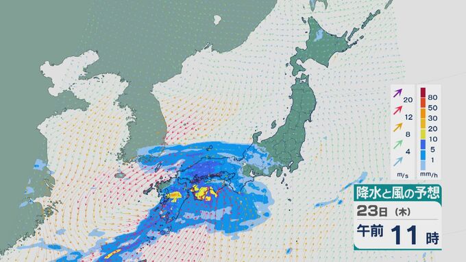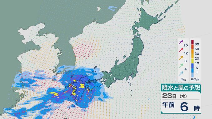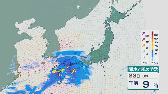 23日(木)から24日(金)にかけて低気圧が発達しながら日本付近を通過 23日は九州から近畿にかけて大雨のところも 雨と風シミュレーション 北陸放送 2026年4月21日(火) 18:15 国内 23日の午前中は、低気圧が東シナ海から九州に進む見込みです。それにともない、九州から近畿にかけて雨雲がかかりそうです。九州の西部や四国の沿岸部で雨の降り方が強まるでしょう。