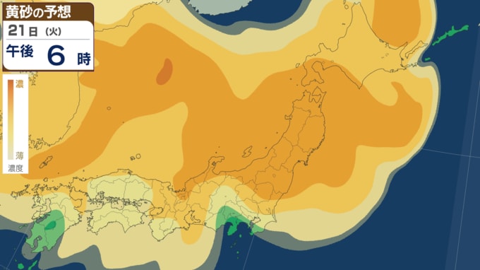 今後、23日(木)にかけては、ほぼ日本全国に「黄砂」が飛来する可能性があります。