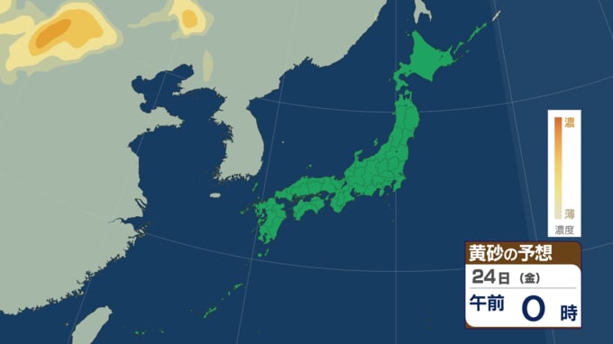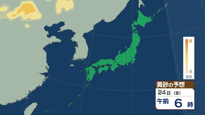【黄砂・雨情報】黄砂のあとは雨が降る? 23日にかけてほぼ全国に黄砂飛来の可能性 高濃度の黄砂飛来が予想される所も その後は西日本~東日本で雨か【黄砂・雨の最新予想シミュレーションあり】 青森テレビ 2026年4月21日(火) 14:30 国内 【4月24日(金)午前】黄砂の予想シミュレーション ♦黄砂の予想シミュレーション (4月21日・22日・23日・24日) ♦雨・風の予想シミュレーション ♦記事を最初から読む